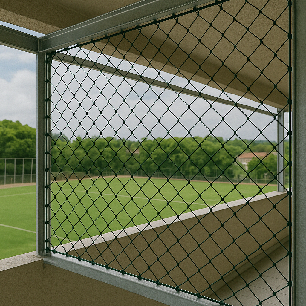Para projetos que exigem resistência ampliada, instalamos redes com estrutura metálica reforçada. Essa solução combina estética, força e durabilidade, ideal para ambientes de grande circulação e locais que demandam segurança extra.